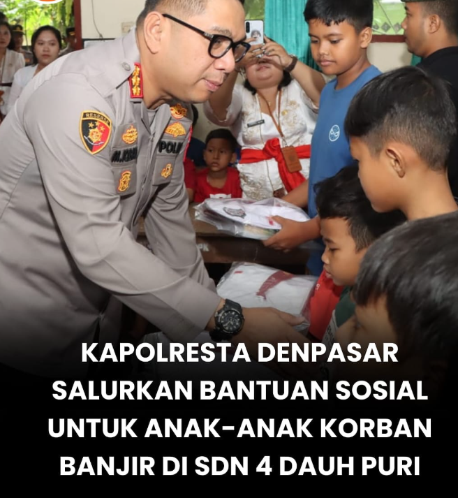 Kapolresta Denpasar, Kombes Pol. Muhammad Iqbal Simatupang, S.I.K., M.H., menunjukkan kepedulian nyata terhadap korban bencana dengan menyalurkan bantuan sosial khusus bagi anak-anak di SDN 4 Dauh Puri, Denpasar. Dalam kegiatan yang berlangsung penuh kehangatan itu, Kapolresta secara langsung menyerahkan beragam perlengkapan sekolah mulai dari alat tulis, seragam merah putih, hingga sepatu baru bagi para siswa yang terdampak banjir. Kehadiran jajaran kepolisian ini bukan hanya membawa bantuan materiil, tetapi juga pesan moral agar anak-anak tidak kehilangan semangat belajar meskipun baru saja mengalami musibah. Kombes Iqbal menegaskan bahwa Polri hadir bukan hanya dalam situasi keamanan, tetapi juga ketika masyarakat menghadapi bencana. “Kami ingin memastikan anak-anak tetap bisa bersekolah dengan layak. Pendidikan mereka tidak boleh terganggu oleh musibah banjir ini,” ujarnya. Dengan langkah ini, Polresta Denpasar berharap dapat meringankan beban orang tua sekaligus menumbuhkan optimisme baru bagi para siswa untuk tetap menatap masa depan dengan penuh keyakinan.