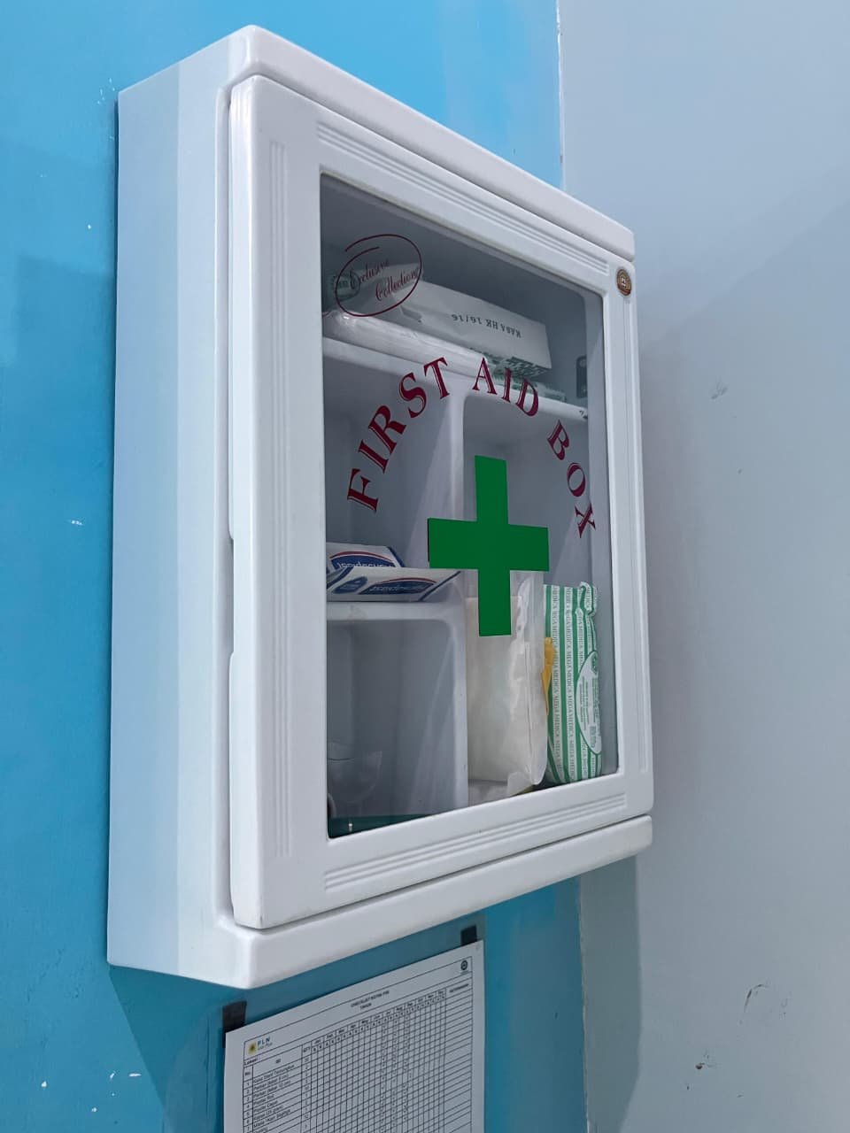 Kotak P3K ditempatkan pada lokasi yang mudah dijangkau dan dilengkapi dengan perlengkapan medis dasar sesuai standar keselamatan kerja. Dengan ketersediaan P3K, karyawan diharapkan dapat memperoleh pertolongan pertama secara cepat dan tepat sebelum mendapatkan penanganan lebih lanjut apabila diperlukan.