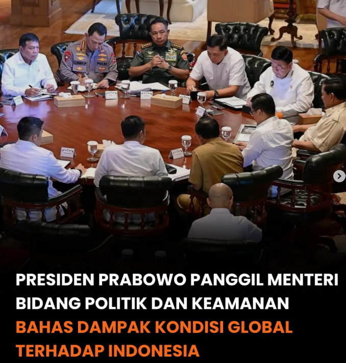 Presiden Republik Indonesia, Prabowo Subianto, memanggil sejumlah menteri yang membidangi urusan politik dan keamanan ke kediamannya di Padepokan Garuda Yaksa, Bukit Hambalang, Bogor, Jawa Barat, pada Senin (23/6/2025). Pertemuan tersebut digelar dalam suasana tertutup dan penuh kehati-hatian, menyusul dinamika global yang terus berkembang dan dinilai dapat memberikan dampak signifikan terhadap stabilitas nasional. Sekretaris Kabinet, Teddy Indra Wijaya, menyampaikan bahwa pertemuan itu bertujuan untuk mengevaluasi kondisi geopolitik internasional serta mengidentifikasi potensi risiko yang harus diantisipasi oleh pemerintah Indonesia. “Pertemuan tersebut membahas terkait perkembangan kondisi global dan dampaknya terhadap Indonesia, beserta langkah strategis yang harus dipersiapkan,” ujar Teddy, seperti dikutip dari akun resmi @sekretariat.kabinet.