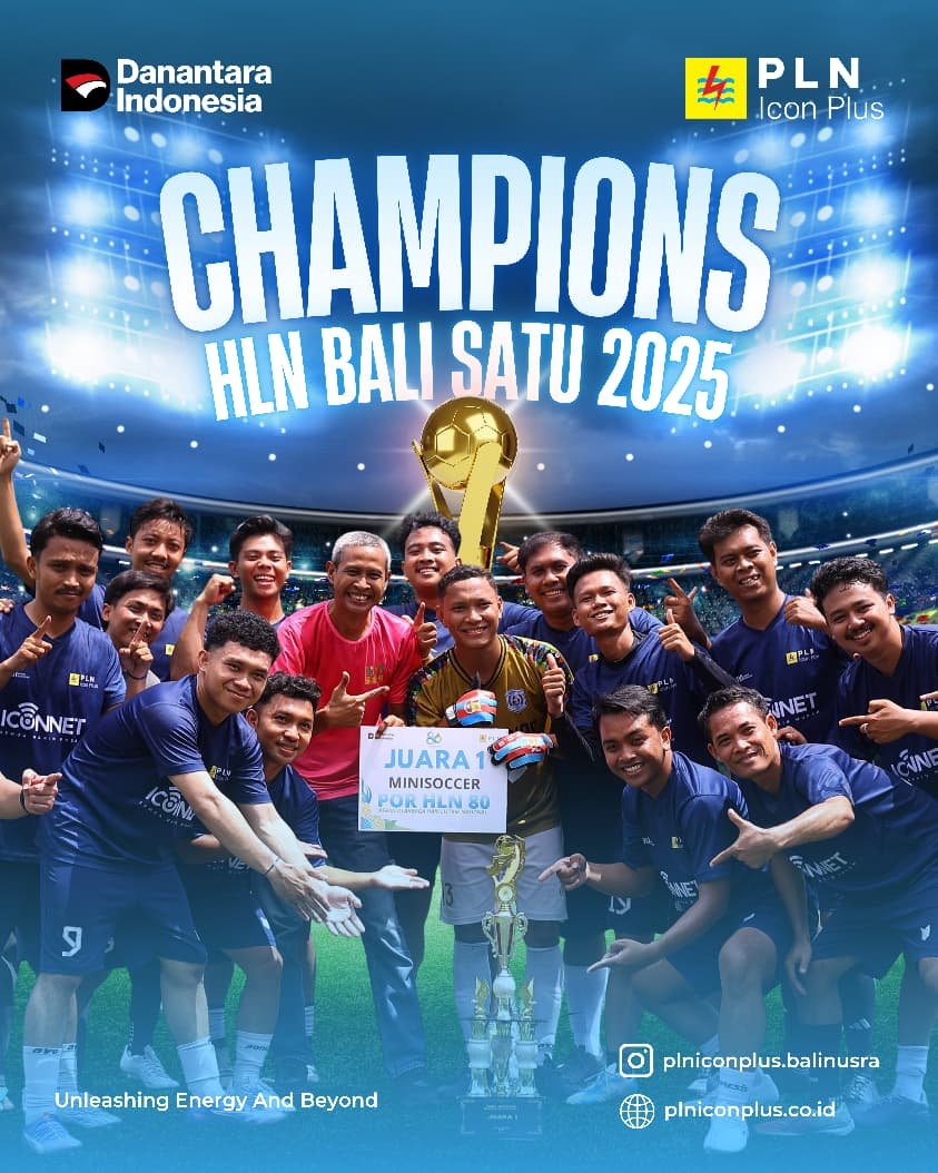 General Manager PLN Icon Plus SBU Regional Bali Nusa Tenggara, Bapak Anton Suprapto Adi, menyampaikan apresiasinya atas pencapaian tersebut. “Kemenangan ini bukan hanya soal hasil di lapangan, tapi juga bukti semangat kebersamaan dan kerja sama tim yang luar biasa. Mini Soccer ini menjadi simbol energi positif yang terus kita bangun, baik dalam olahraga maupun dalam bekerja. Semoga semangat ini terus hidup dalam setiap langkah kita,” ujarnya.